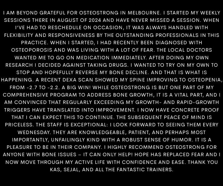 © 2024 OsteoStrong® Melbourne Central, is licensed for use by OsteoStrong® Franchising, LLC.